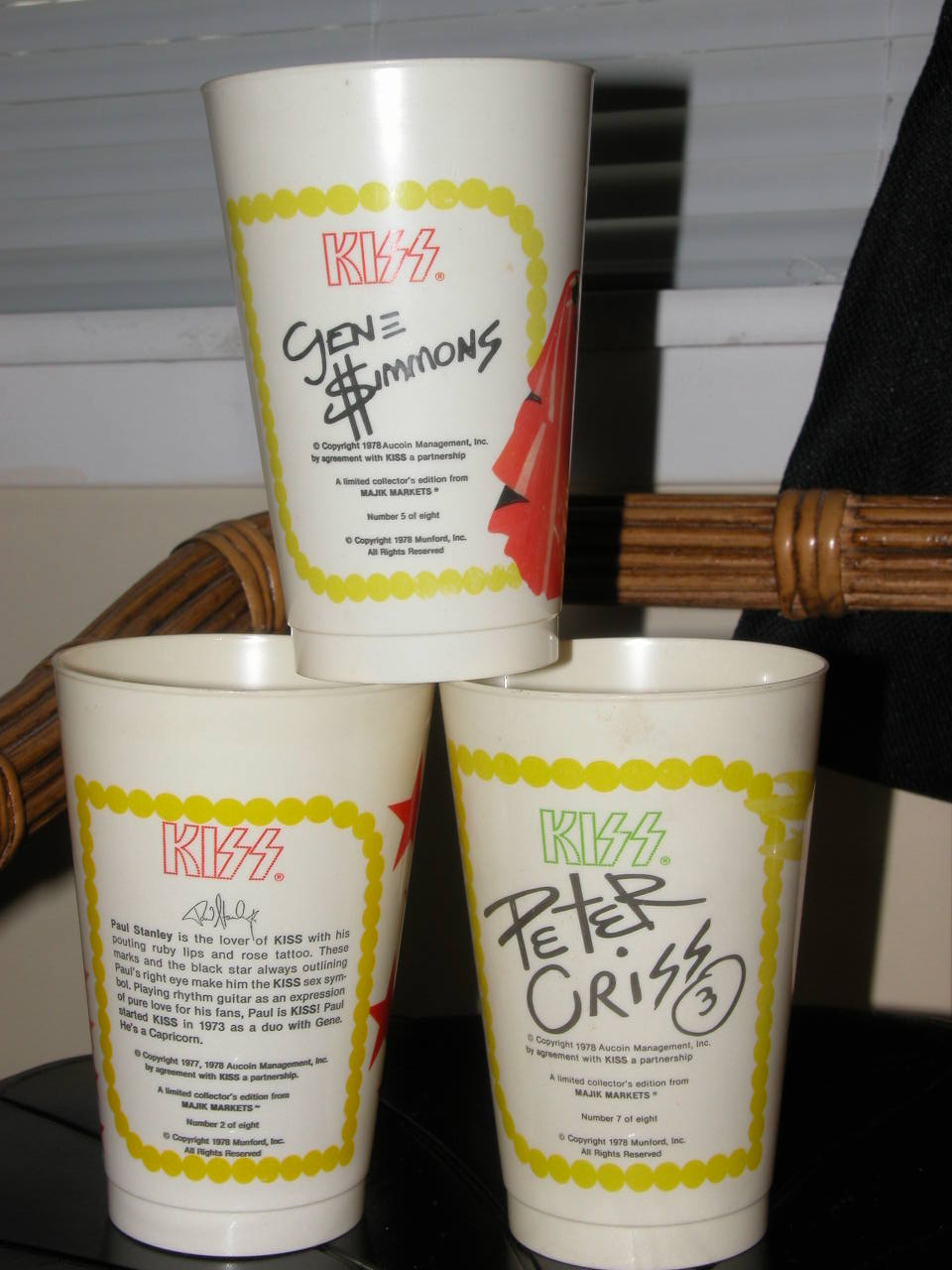 Regrettably, in the heated excitement of collecting the cups we failed to get the Paul Stanley "large signature" in concert-situ version. I will try the auction sites for a photo. Nevertheless.....
