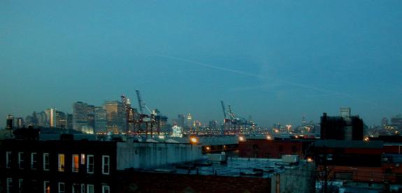 Cargo cranes framed by lower